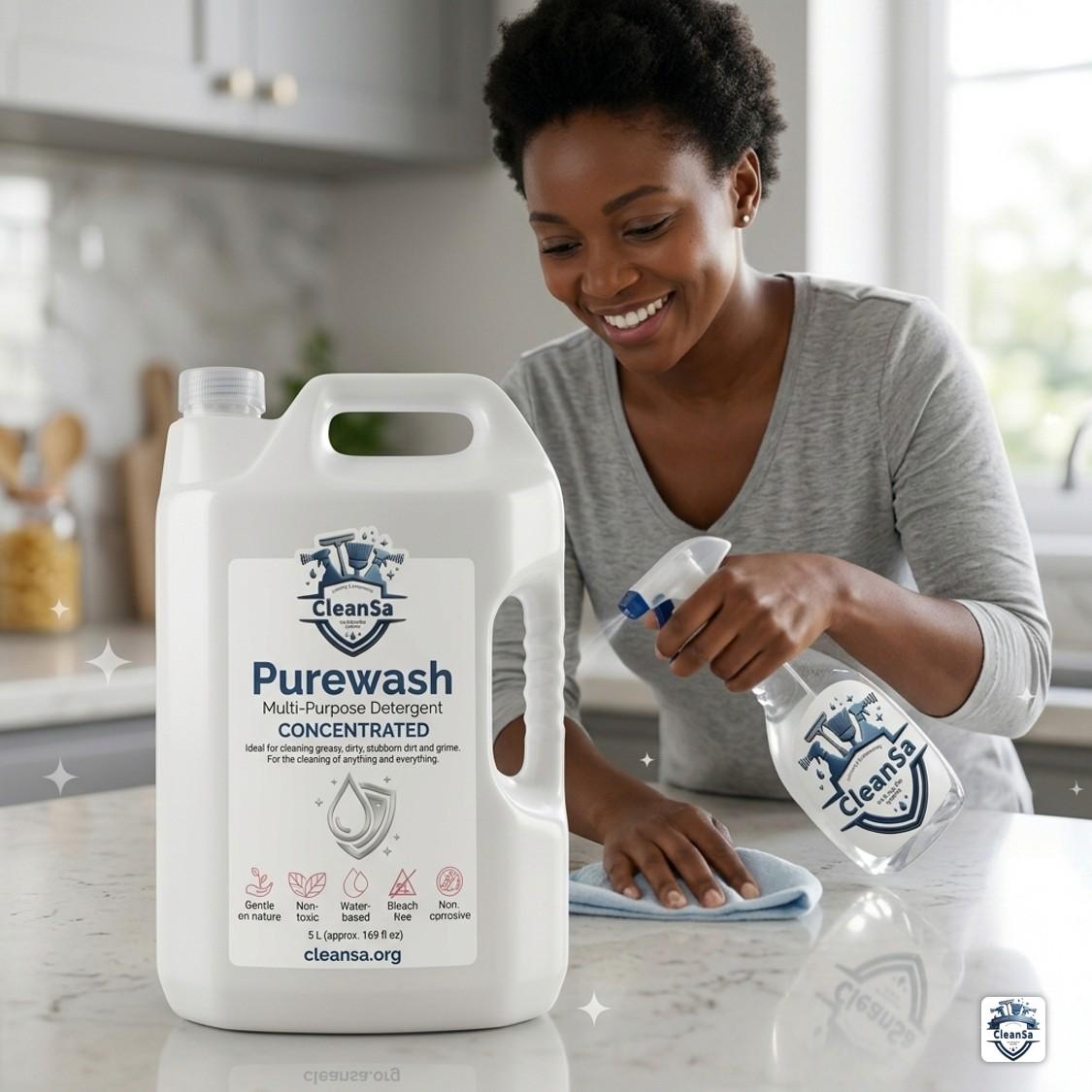 CleanSa Purewash – Multi-Purpose Detergent – Concentrated 5L NewR1600In stockSouth Africa0 ReviewsIdeal for cleaning greasy, dirty, stubborn dirt and grime. For the cleaning of anything and everything from kitchen walls, tiles, ovens, pots and pans, friges, windows, hoods, extraction systems, appliances; to bathrooms, showers, to office machines, printing presses, rubber, clothing, stainless steele, even car mag wheels, car engines, collars and cuffs, carpets, dog kennels, curtains, jewellery, upholstery, overalls, brassware, braai’s and fireplaces, camping equipment, inks (e.g. permanent marker), dye stuffs, water-based paint and many more!Ideal for cleaning greasy, dirty, stubborn dirt and grime. For the cleaning of anything and everything from kitchen walls, tiles, ovens, pots and pans, friges, windows, hoods, extraction systems, appliances; to bathrooms, showers, to office machines, printing presses, rubber, clothing, stainless steele, even car mag wheels, car engines, collars and cuffs, carpets, dog kennels, curtains, jewellery, upholstery, overalls, brassware, braai’s and fireplaces, camping equipment, inks (e.g. permanent marker), dye stuffs, water-based paint and many more!0 Comments 0 Shares 247 Views 0 Reviews